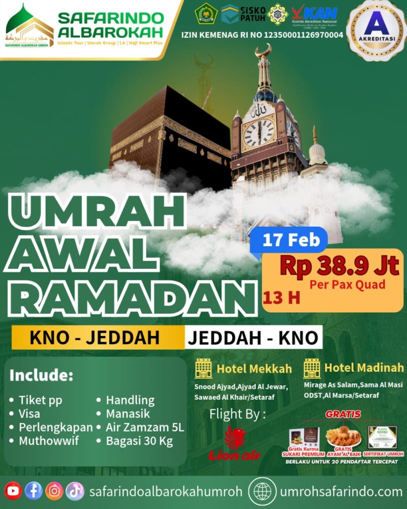 Tipe Paket : UMROH AWAL RAMADHAN